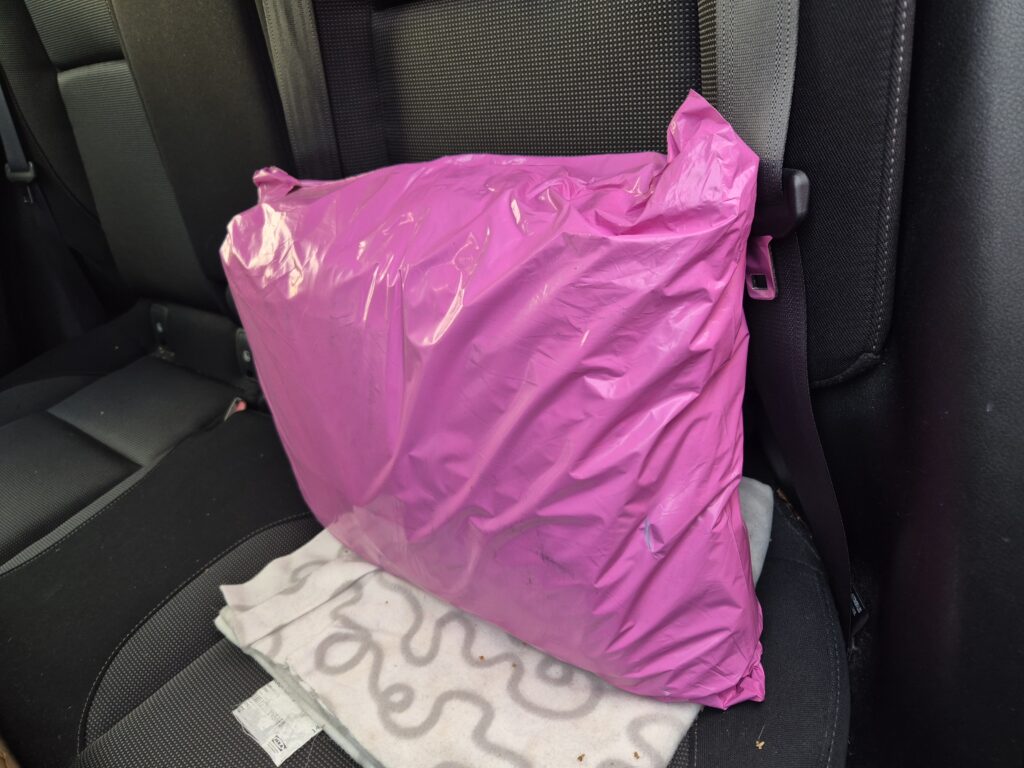 Till slut tog jag mig i kragen och hämtade ut det efterlängtade paketet! Vilken tur att Affären har öppet tidigt på morgonen så jag hinner göra ärenden före jobbet, för det är ganska lönlöst att försöka komma ihåg att hämta paket i samma veva som jag handlar. Jag skjuter ju upp handlandet så länge jag kan… Visst kan det hända att jag handlar mat senare idag, men nu har jag åtminstone hämtat paketet innan det åker tillbaka. OK, det skulle ligga kvar några dagar till – men jag åker ju bort och vill ha ett par av plaggen med mig. 😉